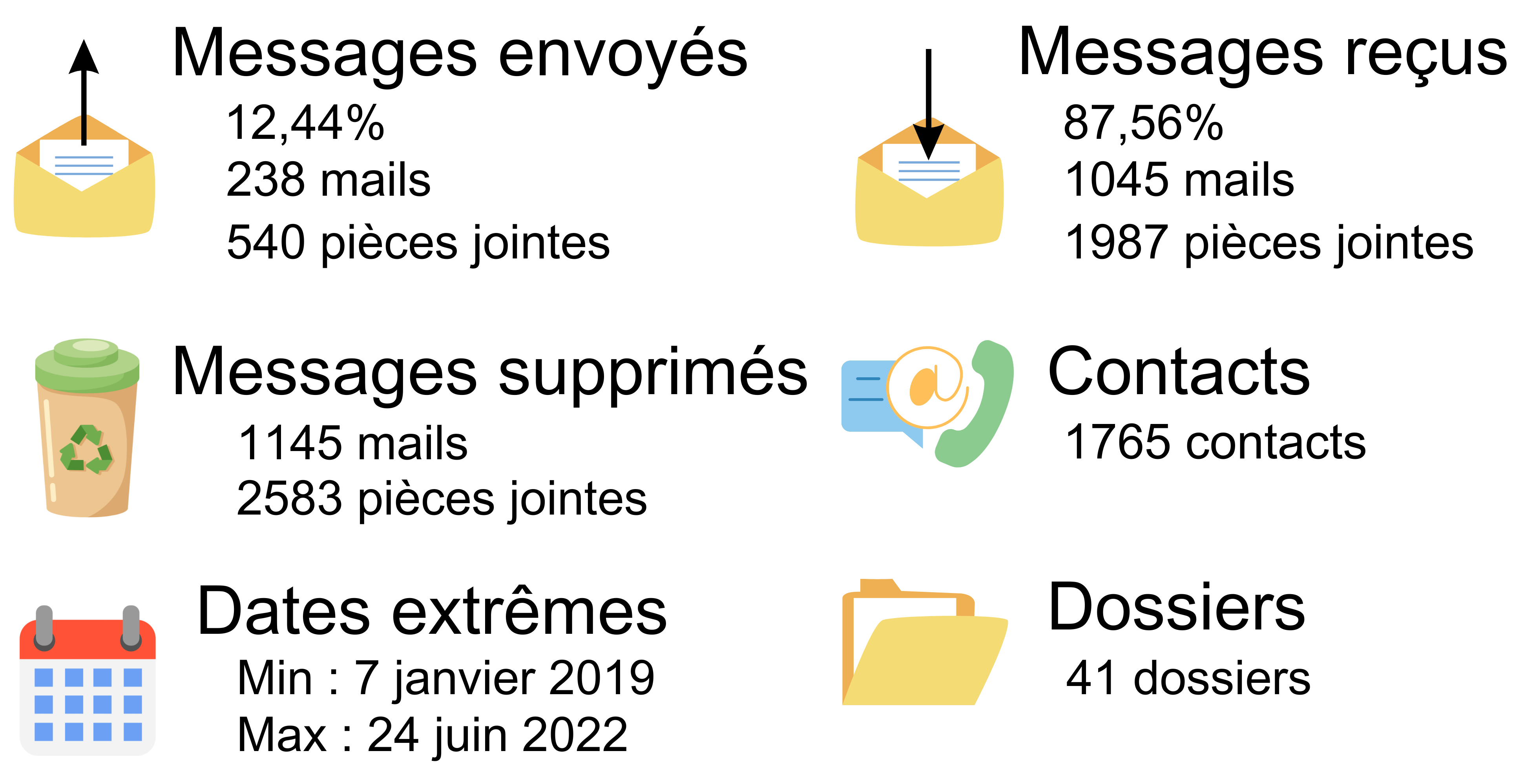 Téléchargez les exports depuis Mails pour retrouver l’ensemble des métadonnées contenues dans votre messagerie.