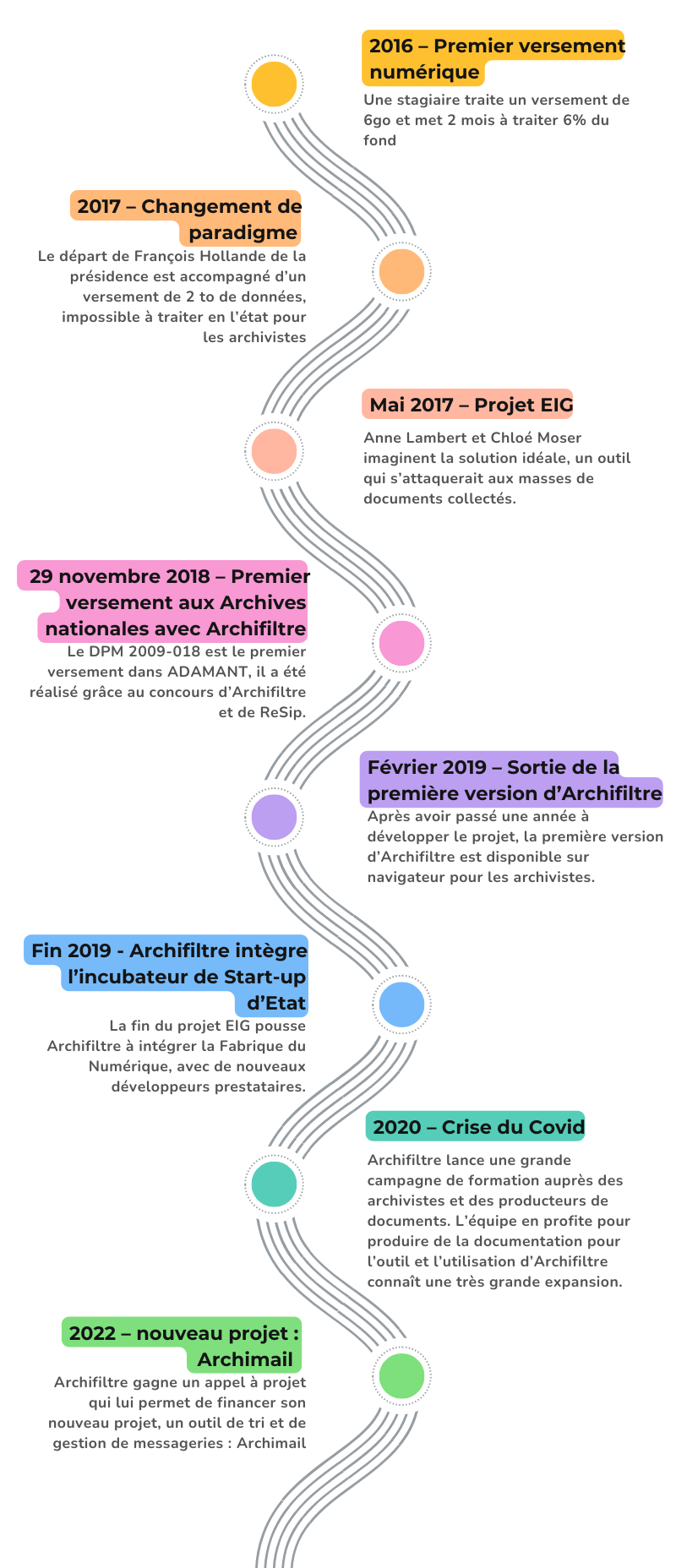 Archifiltre, c’est le fruit d’une collaboration unique d’une petite équipe dynamique, au sein de la Fabrique Numérique des ministères sociaux. Conjuguant l’expertise des archivistes des ministères sociaux avec des profils techniques variés, notre équipe à taille humaine reste toujours à l’écoute de ses utilisateurs, travaillant en étroite collaboration pour développer un outil répondant précisément à leurs besoins.